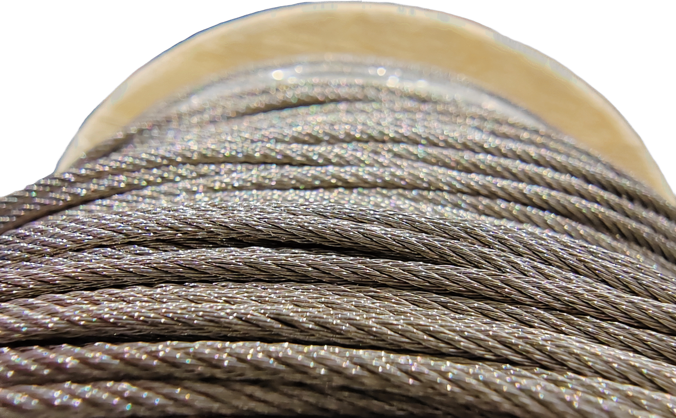 Pletenice DIN 3055 7×7 A4 so izdelane iz visokokakovostnega nerjavečega jekla razreda A4 (AISI 316), kar pomeni vrhunsko odpornost proti koroziji, tudi v zelo agresivnih okoljih, kot so morska voda, kemikalije in visoka vlažnost. Zgradba 7×7 pomeni, da je vsaka pletenica sestavljena iz 7 snopov, pri čemer ima vsak snop 7 žic – skupaj torej 49 prepletenih žic.